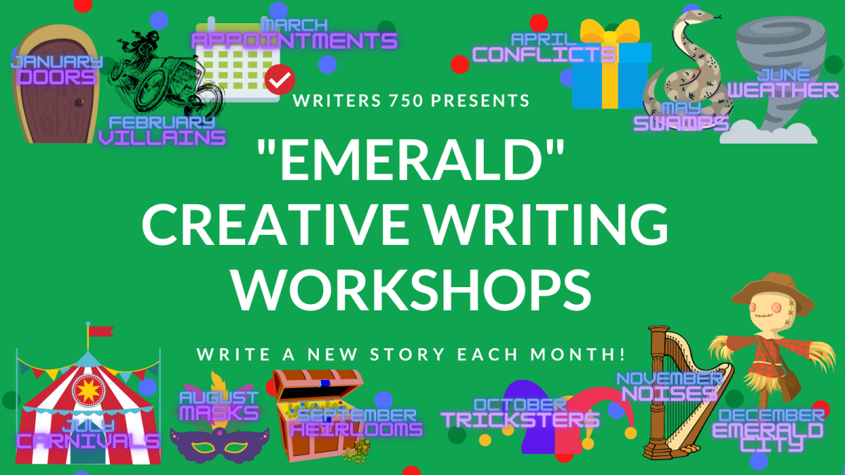 Click on a new short story workshop each month. For example, January’s workshop is January Doors 101. February’s workshop is February Villains 102, and so on, etc. Click on any workshop to begin.