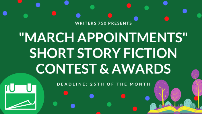 “MARCH APPOINTMENTS” Short Story Contest 2021 is now closed. It is time to vote! Please send me your votes in a private message either in a Twitter DM or tap on “Chat Room” above – you will be linked to Writers 750 at Goodreads.